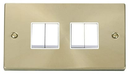 Satin Brass 10A 4 Gang 2 Way Light Switch - White Trim