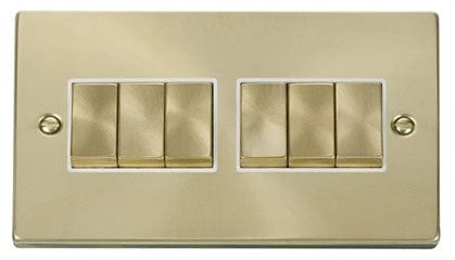 Satin Brass 10A 6 Gang 2 Way Ingot Light Switch - White Trim