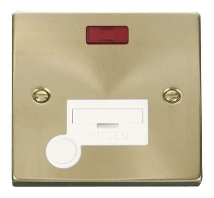 Satin Brass 13A Fused Connection Unit With Neon With Flex - White Trim