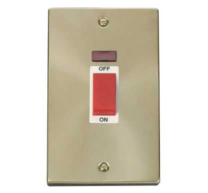 Satin Brass 2 Gang Size 45A Switch With Neon - White Trim