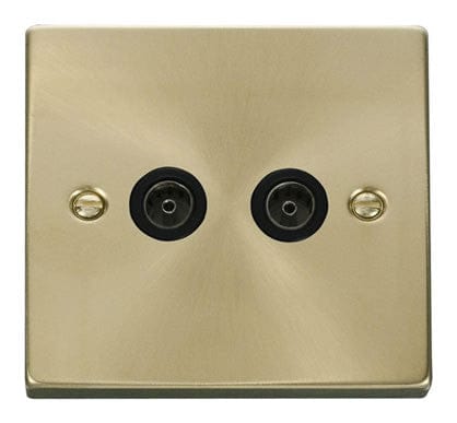 Satin Brass 2 Gang Twin Coaxial TV Socket - Black Trim