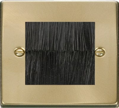 Our Satin Brass raised plate, TV, Satellite, Phone, Data & Brush Outlet sockets are beautifully crafted with a sleek profile. Each plate has a subtle brushed spiral effect from the plate centre.