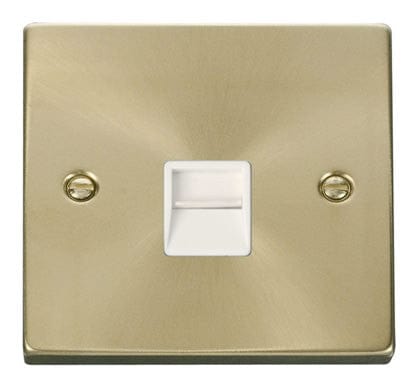 Satin Brass Secondary Telephone Single Socket - White Trim