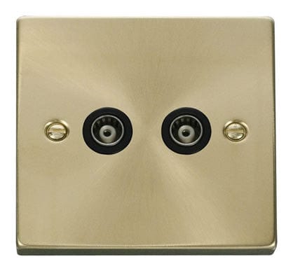 Our Satin Brass raised plate, TV, Satellite, Phone, Data & Brush Outlet sockets are beautifully crafted with a sleek profile. Each plate has a subtle brushed spiral effect from the plate centre.