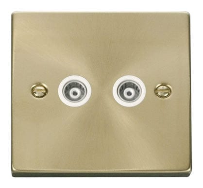 Satin Brass Twin Isolated Coaxial Socket - White Trim