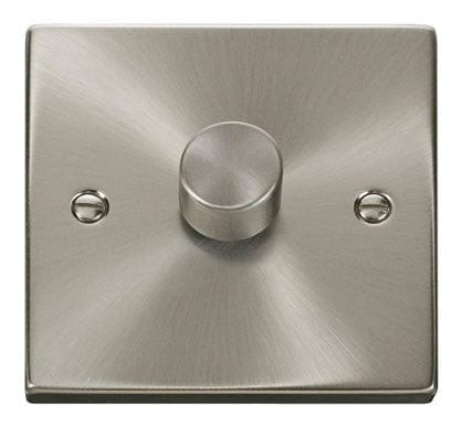 Satin Chrome 1 Gang 2 Way LED 100W Trailing Edge Dimmer Light Switch