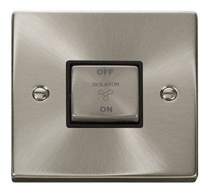 Satin Chrome 10A 1 Gang Ingot 3 Pole Fan Isolation Switch - Black Trim