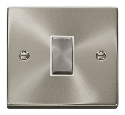 Satin Chrome 10A 1 Gang Intermediate Ingot Light Switch - White Trim