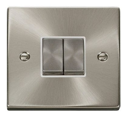 Satin Chrome 10A 2 Gang 2 Way Ingot Light Switch - White Trim