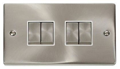 Satin Chrome 10A 4 Gang 2 Way Ingot Light Switch - White Trim
