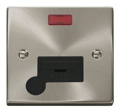 Satin Chrome 13A Fused Connection Unit With Neon With Flex - Black Trim