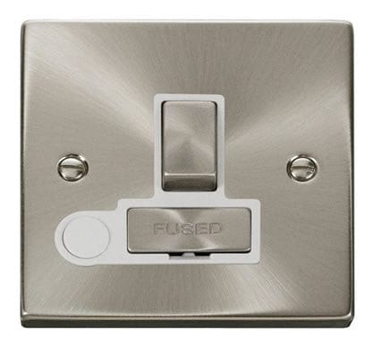 Satin Chrome 13A Fused Ingot Connection Unit Switched With Flex - White Trim
