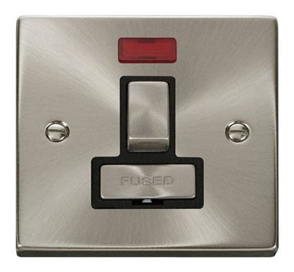 Satin Chrome 13A Fused Ingot Connection Unit Switched With Neon - Black Trim
