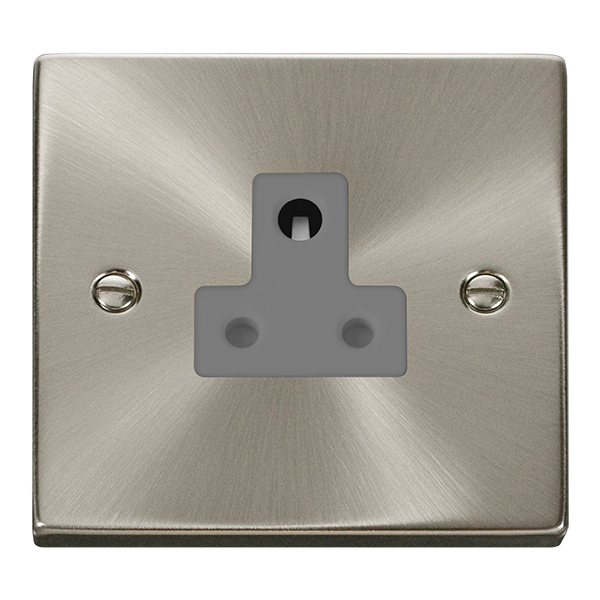 Satin Chrome 1 Gang 5A Round Pin Socket - Grey Trim