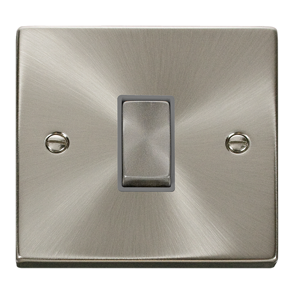 Satin Chrome 10A 1 Gang Intermediate Ingot Light Switch - Grey Trim