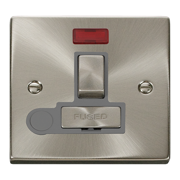Satin Chrome 13A Fused Ingot Connection Unit Switched With Neon With Flex - Grey Trim