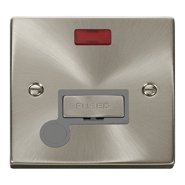 Satin Chrome 13A Fused Ingot Connection Unit With Neon With Flex - Grey Trim