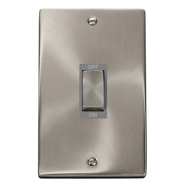 Our Satin / Brushed Chrome raised plate, cooker, appliance & control switches are beautifully crafted with a sleek profile. Each plate has a subtle brushed spiral effect from the plate centre.