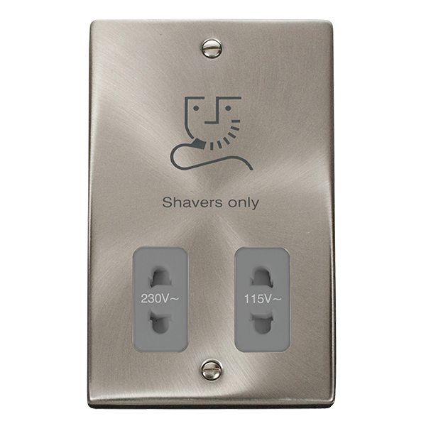 Satin Chrome Shaver Socket 115v/230v - Grey Trim