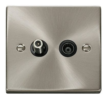 Satin Chrome Satellite And Isolated Coaxial 1 Gang Socket - Black Trim