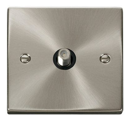 Satin Chrome Satellite Socket 1 Gang - Black Trim