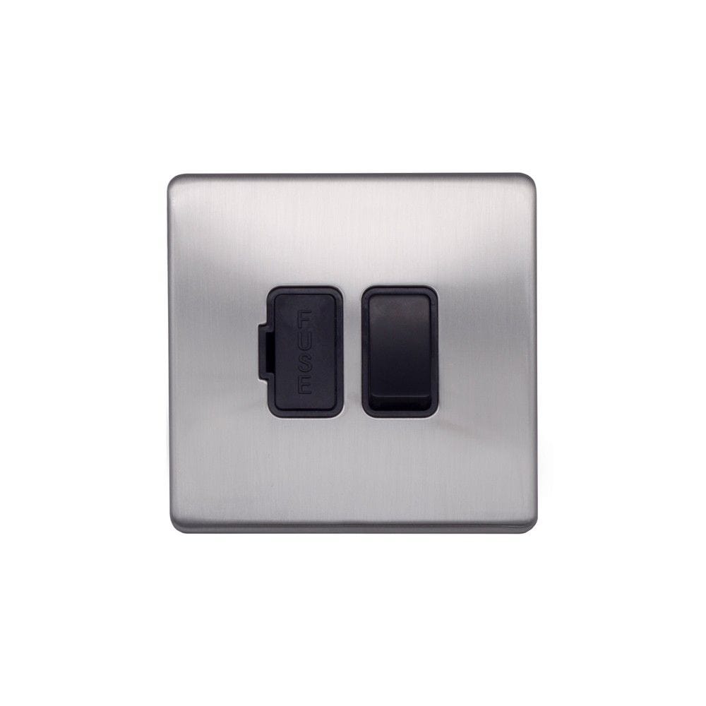 With a brushed finish to reduce fingerprints and reflection, this screwless Brushed Chrome 13A Switched Fuse Connection Unit with black Trim from Speedy Electrical offers quality and style at a competitive price.