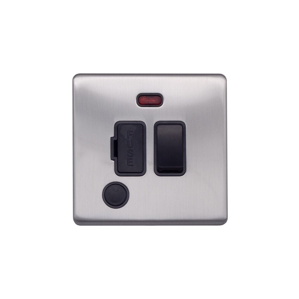 With a brushed finish to reduce fingerprints and reflection, this screwless Brushed Chrome 13A Switched Fuse Connection Unit&Flex Outlet/Neon with black Trim from Speedy Electrical offers quality and style at a competitive price.
