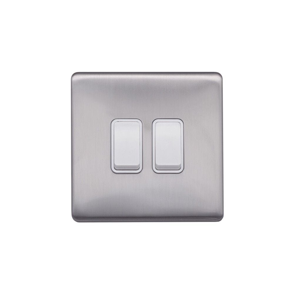 With a brushed finish to reduce fingerprints and reflection, this screwless Brushed Chrome 10A 2 Gang 2 Way Light Switch with white Trim from Speedy Electrical offers quality and style at a competitive price.