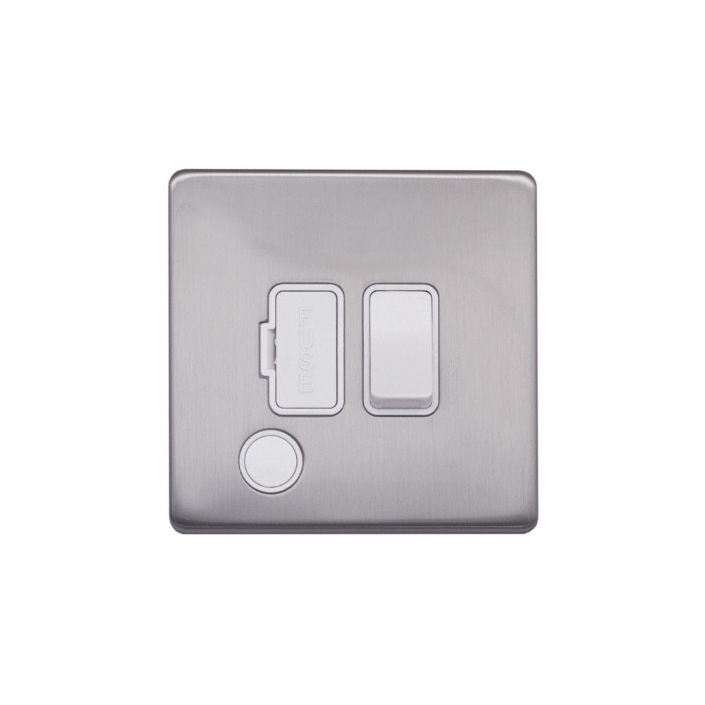 With a brushed finish to reduce fingerprints and reflection, this screwless Brushed Chrome 13A Switched Fuse Connection Unit Flex Outlet with white Trim from Speedy Electrical offers quality and style at a competitive price.