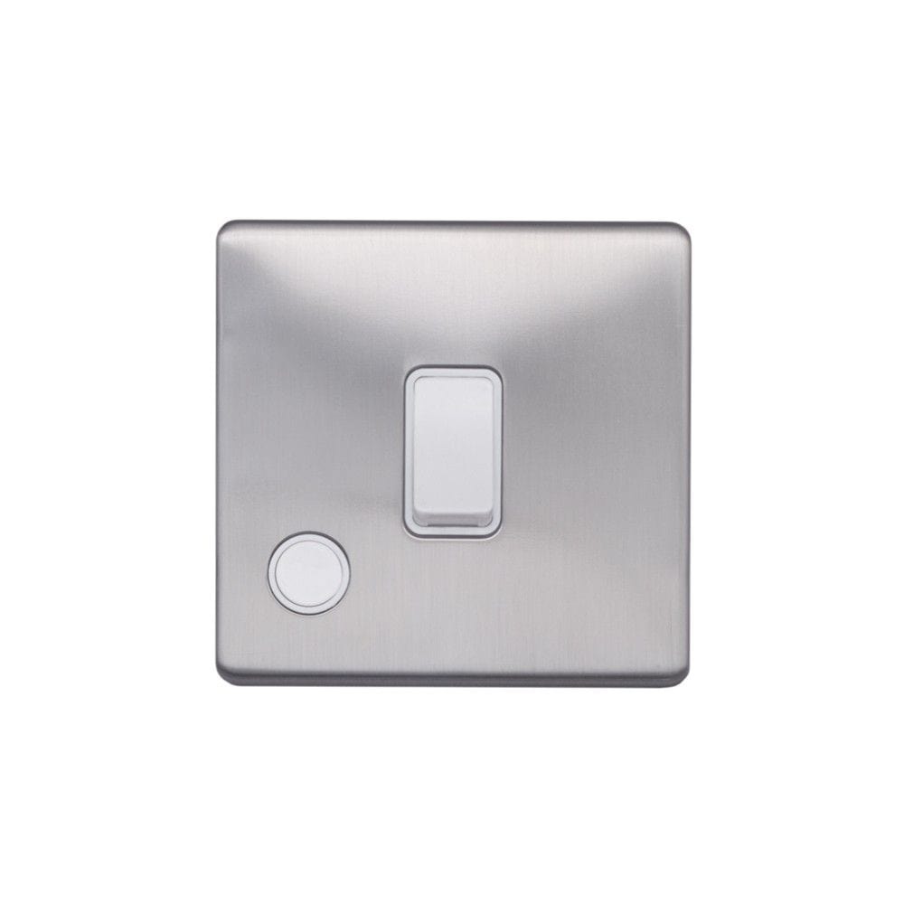 With a brushed finish to reduce fingerprints and reflection, this screwless Brushed Chrome 20A 1 Gang Double Pole Switch Flex Outlet with white Trim from Speedy Electrical offers quality and style at a competitive price.