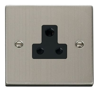 Stainless Steel 1 Gang 5A Round Pin Socket - Black Trim