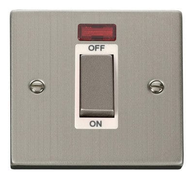 Stainless Steel 1 Gang Ingot Size 45A Switch With Neon - White Trim