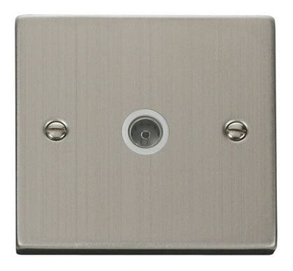 Stainless Steel 1 Gang Single Coaxial TV Socket - White Trim