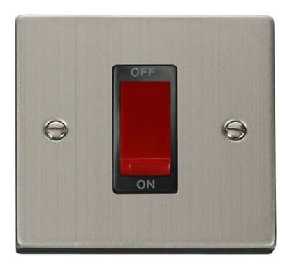 Stainless Steel 1 Gang Size 45A Switch - Black Trim