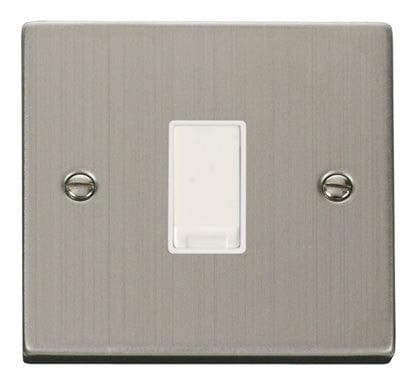 Stainless Steel 10A 1 Gang 2 Way Light Switch - White Trim