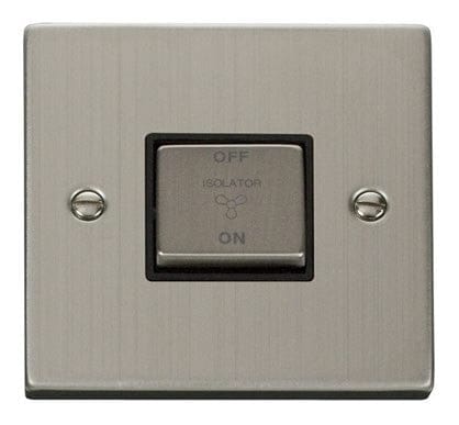 Stainless Steel 10A 1 Gang Ingot 3 Pole Fan Isolation Switch - Black Trim