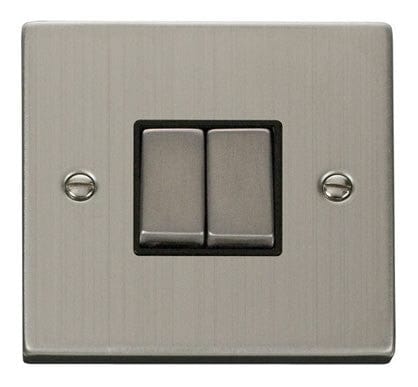 Stainless Steel 10A 2 Gang 2 Way Ingot Light Switch - Black Trim