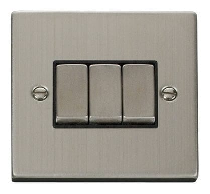 Stainless Steel 10A 3 Gang 2 Way Ingot Light Switch - Black Trim