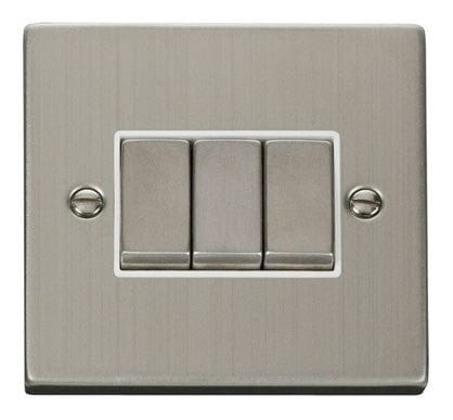 Stainless Steel 10A 3 Gang 2 Way Ingot Light Switch - White Trim