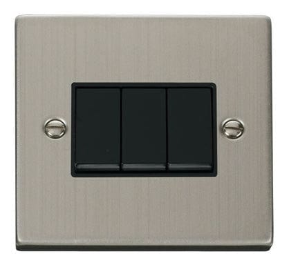 Stainless Steel 10A 3 Gang 2 Way Light Switch - Black Trim