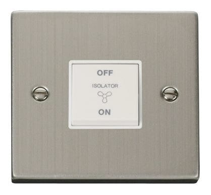 Stainless Steel 10A 3 Pole Fan Isolation Switch - White Trim