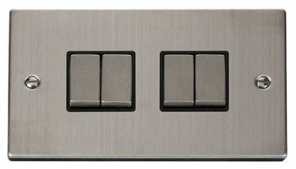Stainless Steel 10A 4 Gang 2 Way Ingot Light Switch - Black Trim