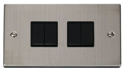 Stainless Steel 10A 4 Gang 2 Way Light Switch - Black Trim