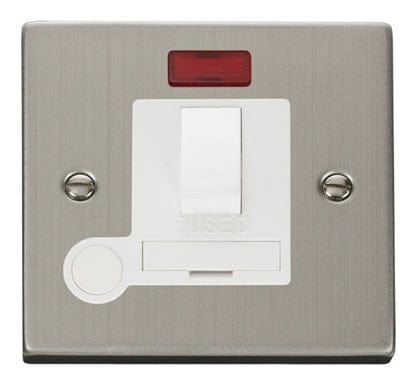 Stainless Steel 13A Fused Connection Unit Switched With Neon With Flex - White Trim