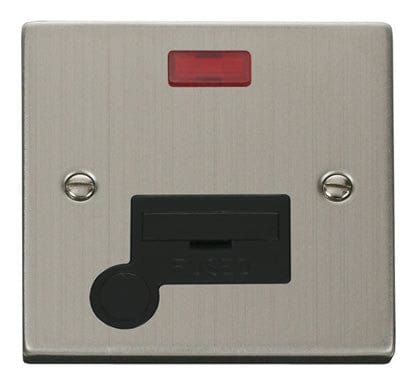 Stainless Steel 13A Fused Connection Unit With Neon With Flex - Black Trim
