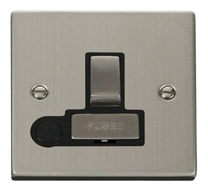 Stainless Steel 13A Fused Ingot Connection Unit Switched With Flex - Black Trim