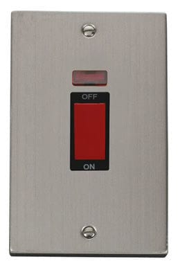 Stainless Steel 2 Gang Size 45A Switch With Neon - Black Trim