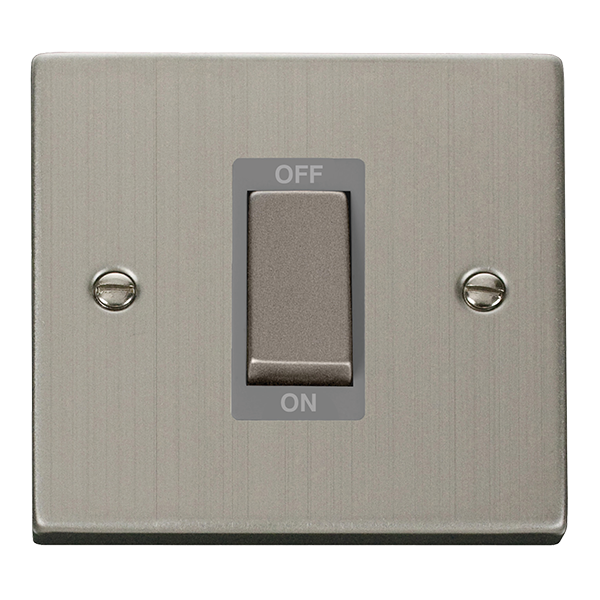 Stainless Steel 1 Gang Ingot Size 45A Switch - Grey Trim
