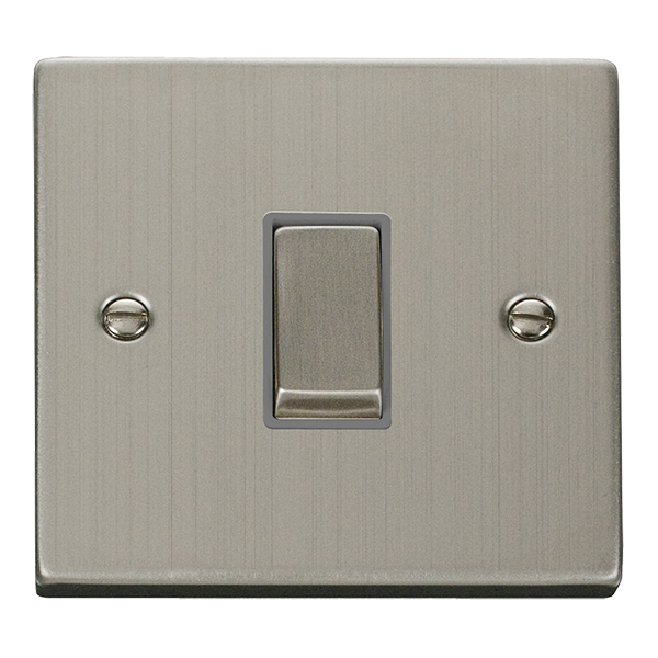 Stainless Steel 10A 1 Gang 2 Way Ingot Light Switch - Grey Trim