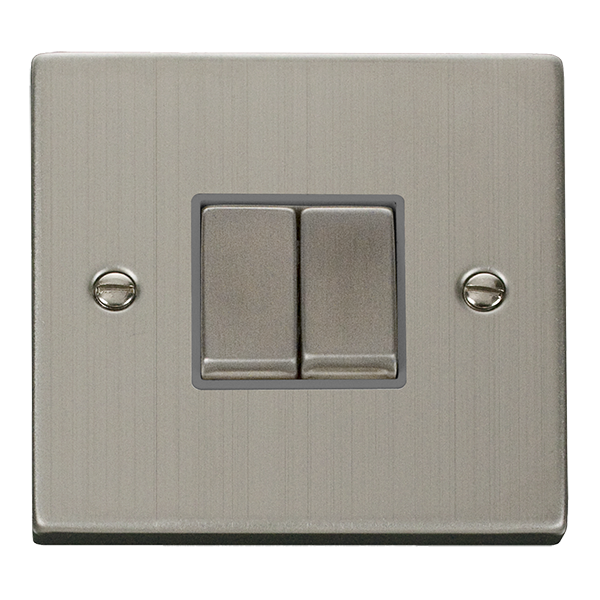 Stainless Steel 10A 2 Gang 2 Way Ingot Light Switch - Grey Trim